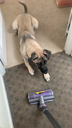 Basha is such a good boy. We are first time dog people and we find him to be pretty easy. We think he's settling in well. He's mellow to medium energy indoors and active outside. He likes his chewies and is very treat motivated so it's easy to train him. He requires about 3 walks a day and then some mental enrichment at home which seems to make him satisfied. He's sweet, gentle, loving yet independent too. He had a couple accidents but seems to be pretty much housetrained. He likes his car rides, is outgoing with our friends and walks well on leash. He'd probably be fine with another mature dog in the household. Basha is a great dog. Anyone would be lucky to have him.